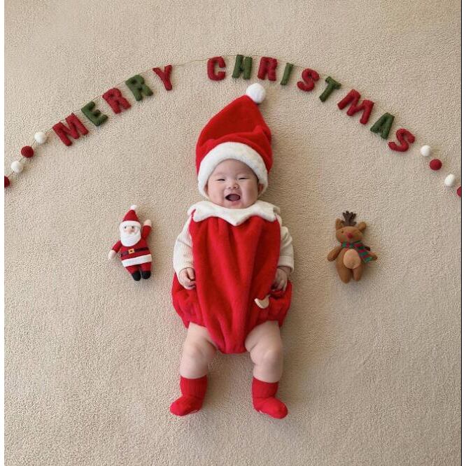 ✧即納✧ロンパース セット 帽子付き 長袖 クリスマス サンタクロース 仮装 キッズ ベビー 赤ちゃん パーティ コスプレ 子供 衣装 男の子 女の子 撮影 インスタ映 ニューボンフォト 60 70 80 90