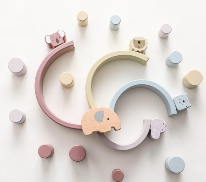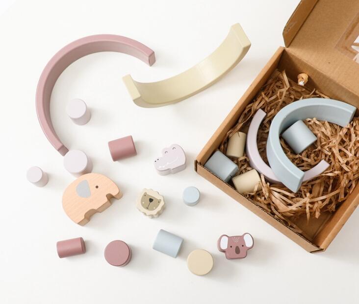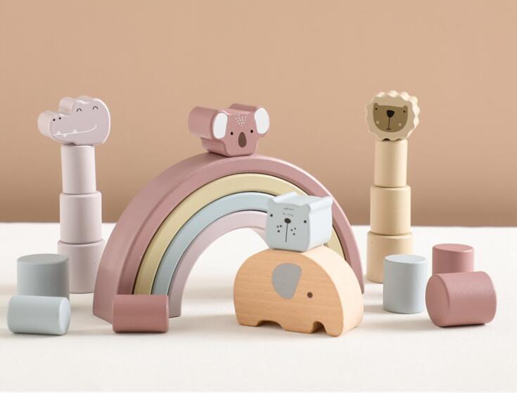 動物やいろんな形のブロックを積み上げていく知育玩具です。